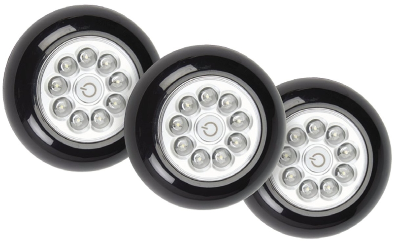 Fulcrum 30016-303 Tap Light, AAA Battery, 9-Lamp, LED Lamp, 40.5 Lumens, 5500 K Color Temp, Black, Bracket Mounting