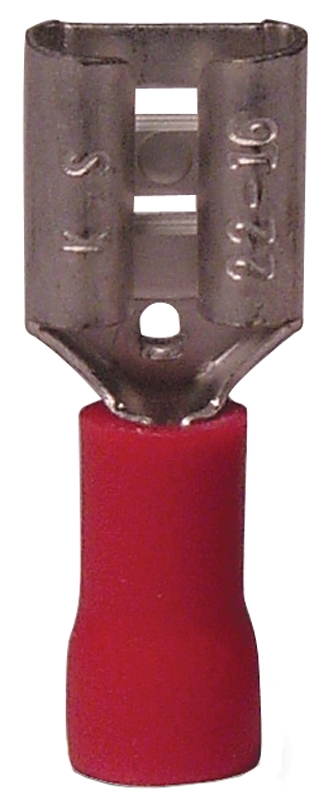 Quick and reliable crimp-type wire connections. Vinyl insulated shank with 0.250 in x 0.032 in tab. 75 deg C temperature rating.