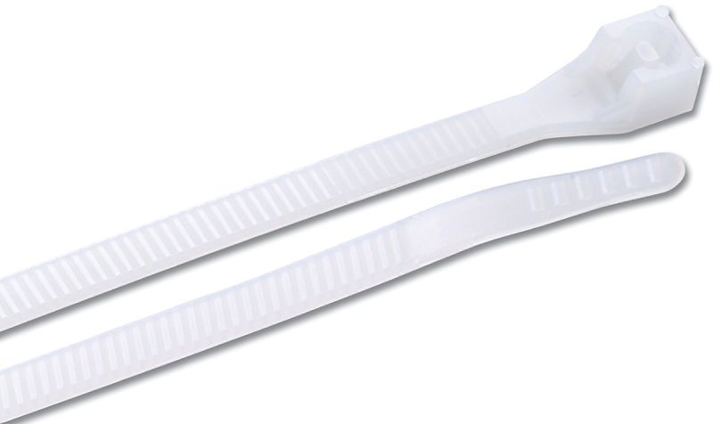 Heavy-duty zip ties are hard-wearing and designed for rugged industrial, automotive and farm applications demanding high levels of tensile strength and large bundle diameters. Permanently secured until you cut them off GB ties lock tight without stretching or sliding. Made from durable 100% nylon 6/6 material, these ties feature our patented double-lock design, with locking teeth on both sides of the tie and at the head ensuring a stronger connection and 50% greater tensile strength than the industry standard while the patented one-piece, injection-molded construction eliminates failure due to parts working loose or breaking off. Raised ridges on the cable ties bent tips are designed to provide a secure grip while requiring minimal effort to close and the strong locking head ensures the increased tensile strength you need. Ideal for ducts, temporary fencing, heavy equipment and vibration prone areas in both electric and non-electric applications, including home repairs, remodeling, kitchen or bathroom renovations in residential and commercial locations. When you’ve got a big job that demands a strong tie able to handle a large bundle diameter then count on Gardner® Bender heavy-duty cable ties.