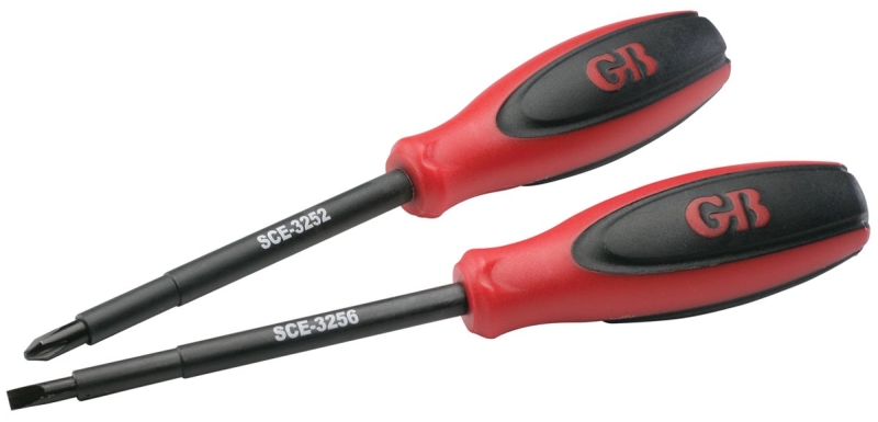 Ergonomic high leverage grips for maximum torque, molded and insulated shaft rated to 1000 V for protection when working with electricity. Hardened chrome vanadium steel, with magnetic tips. Two-piece set includes SCE-3252 #2 Phillips tip and SCE-3256 3/16 in slotted tip. Carded packing.