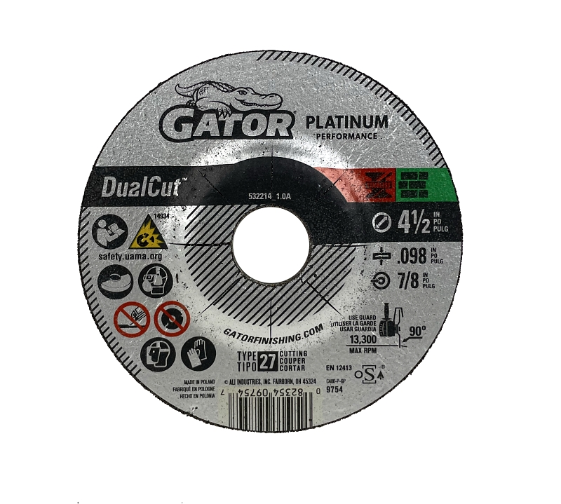 Gator 9754 Cut-Off Wheel, 4-1/2 in Dia, 0.098 in Thick, 7/8 in Arbor, Aluminum Oxide Abrasive