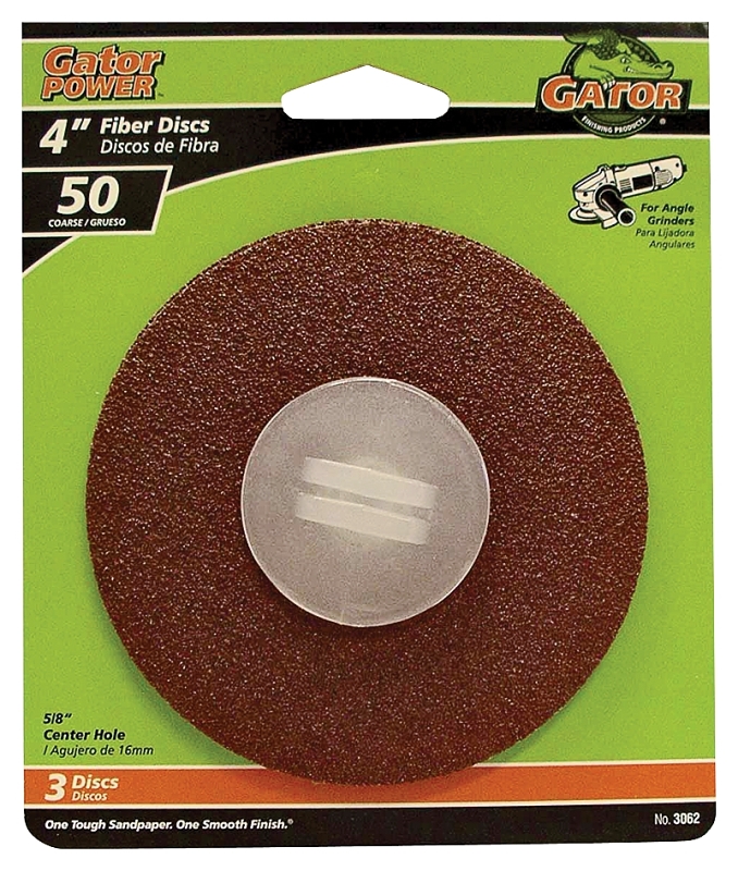 Gator 3062 Fiber Disc, 4 in Dia, 50 Grit, Coarse, Aluminum Oxide Abrasive, Fiber Backing