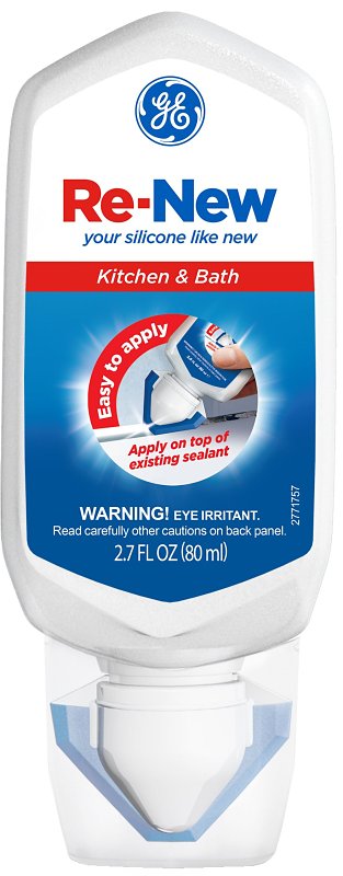 GE Re-New is an innovative solution from America’s #1 silicone brand for refreshing old, unsightly or damaged kitchen and bathroom seals without the time-consuming hassle of removing and replacing the old sealant. Simply apply Re-New over existing 100% silicone sealant to help you get the job done up to 50% faster. The integrated auto-smoothing applicator tools the sealant as you apply it, helping you create a smooth, professional-looking finish. Ideal for long-lasting seals around tubs, showers and sinks, Re-New’s specialty silicone formula is flexible, 100% waterproof, mold and mildew-resistant and water-ready in as little as 6 hr. Don’t re-do it. Just Re-New it.