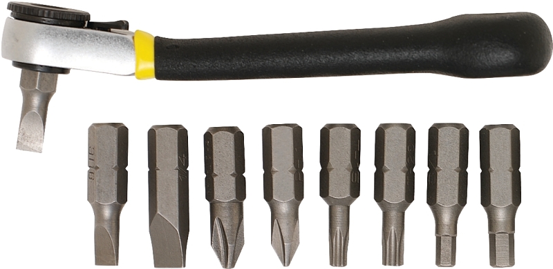Ratchet screwdriver gives you a greater amount of torque than a standard screwdriver and is ideal for reaching screws in obstructed areas. The fine-tooth ratchet creates a swing radius of only 5 deg. Offset handle allows for easier access to screws positioned at odd angles. Set includes our most common bits for routine maintenance needs.