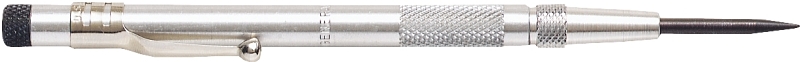 Provides accurate center punches without drill bit traveling, one-handed operation, no hammer needed. Spring tension impact adjustments for working with lighter materials. Replaceable hardened steel point and black oxide finish prevents rust.