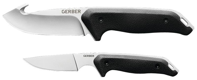 This cleaning kit offers thorough and efficient field dressing, as well as cutting and quartering an animal. The two knife kit has two full-tang blades, the larger with a gut hook feature. Both have a molded rubber handle for comfort and can be sheathed together.