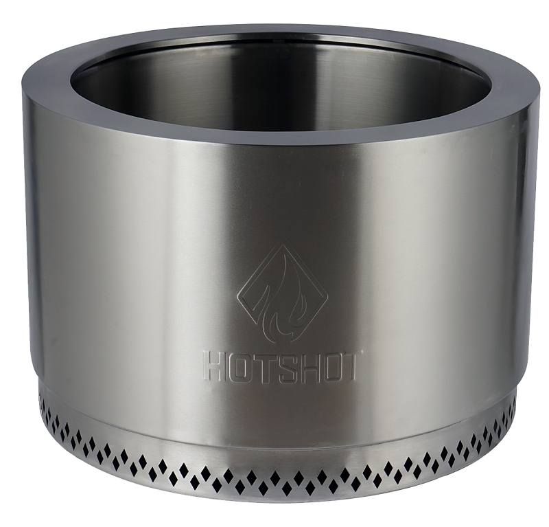 Meet the easy to use, bonfire sized Homestead 25 in HotShot Smokeless Wood Burning Fire Pit. The new way to enjoy a wood burning fire, without the strong smoke odor saturating your clothes. This advanced design creates a smoke free wood fire pit by using intake vents in the double insulated fire pit walls and base, to super-heat the air, and then feed it back into the fire pit bowl, creating a secondary combustion. This new CleanAir Smoke Free Technology removes up to 70% of the particulates in its smoke when the wood level is kept below the top edge. Now you can enjoy super-charged heat, with barely any smoke, and very little ash. This is the largest size in the HotShot Stainless Steel Smokeless fire pit line, with its expanded fire pit firebowl, it will create longer lasting fires, while letting you add wood less often throughout the evening. Extend your time with family and friends outdoors appreciating the benefits of the 25 in HotShot Smokeless Fire Pit from the coziness of your own backyard.