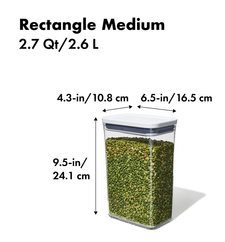 Expanding the possibilities of pantry organization, airtight, space-efficient and stackable storage solution ideally sized for rice, pasta or lentils. With new shapes, sizes, must-have accessories and dishwasher-safe construction, brand-new pop containers are an organizer’s dream. Made to stack together and featuring our signature push-button airtight seal, they are carefully calibrated to keep everyday household staples like flour, sugar, coffee, cereal, oatmeal, coffee, grains, pasta and spices fresh and close at hand. With curved corners for smooth dispensing, handy fill lines and durable, BPA-free construction, pop containers help you take tidying to the next level. Use them anywhere you crave organization the possibilities are endless. For best results, always use the button to open and close. Do not carry pop containers by the lid.