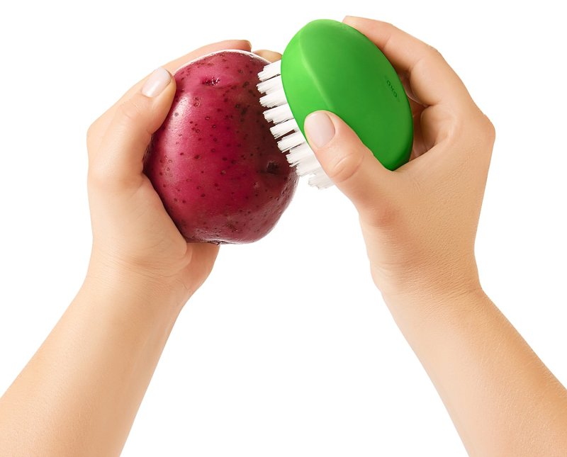 Clean harder vegetables like potatoes and carrots with the flexible vegetable brush. The nylon bristles are sturdy and durable, while the flexible, non-slip grip rests comfortably in your palm.