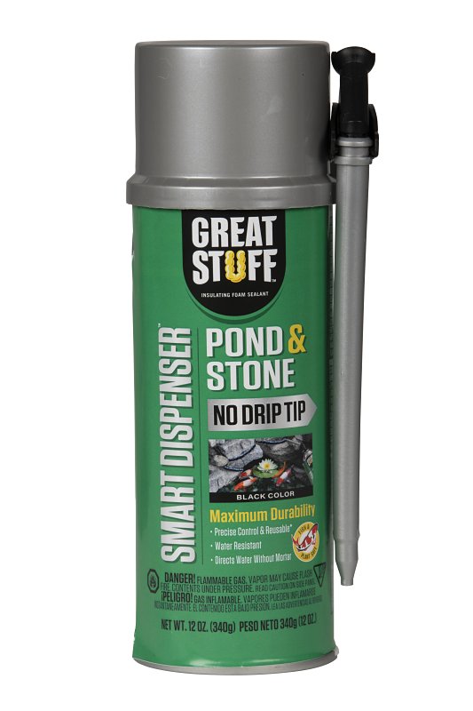 Great Stuff™ pond and stone filler, sealer and adhesive is a ready-to-use, closed-cell polyurethane foam that bonds to porous and nonporous rocks or stones without the use of mortar. Specifically designed to blend in and withstand moist conditions, Great Stuff™ pond and stone can be used on a variety of projects such as retaining walls, water features and landscaping.