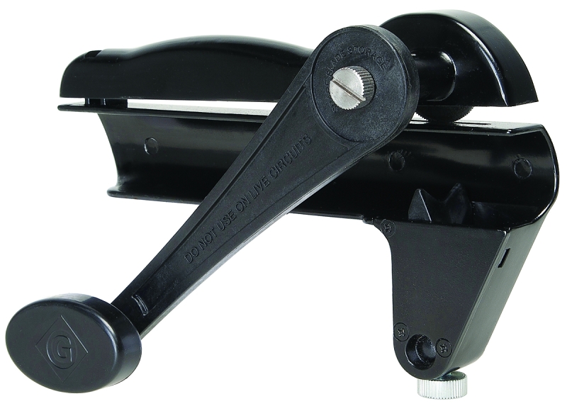 Cuts metal conduit in seconds with a few turns of the crank and a twist of the conduit. Ample clearance between handle and body. Set conduit size for multiple cuts of the same size. No need to reset. Set blade adjustment with only a screwdriver. In-handle blade storage holds up to five spare blades. Weighs 4 lb. Capacity of 14/2 to 10/4 AWG, 3/8 in flexible metal conduit.