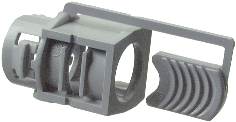 Push-in style with captive locking wedge. Rigid PVC. Excellent strain relief and insulation. In a dry location, use to secure #14 to #10 non-metallic sheathed cable to steel outlet box or other metal enclosure. Fits NM cable #14/2 to #10/3. Fits 1/2 in knockouts. UL, CSA listed.
