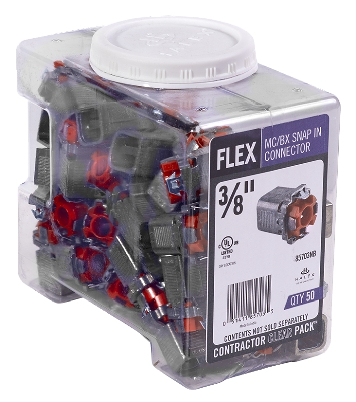Halex Flex Double Connector, 3/8 in Trade, Steel, Zinc-Plated, Suitable for: 1/2 in Knockout