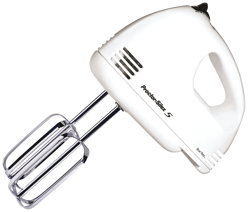 Equipped with a 125 W motor, this lightweight hand mixer offers five power speeds and full-size traditional chrome beaters. Its unique Bowl Rest mixer stabilizer allows for resting the appliance on the side of a bowl with the beaters down, so there’s no more tipping or messy drips. For added convenience, the unit features pushbutton beater ejection and a comfortable handle for extra control. Ideal for blending, stirring, mixing, beating and whipping, the hand mixer measures approximately 9 x 5 x 4 in.