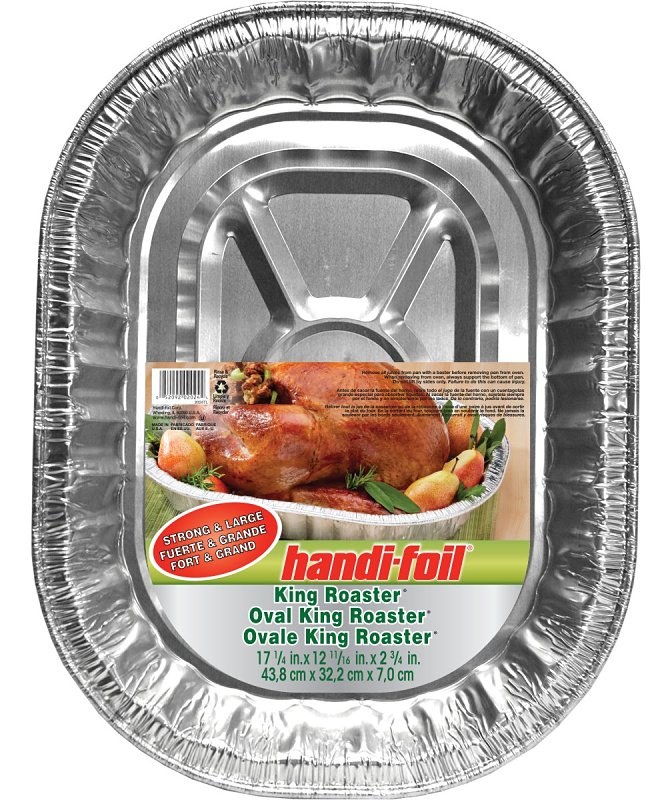 Handi-Foil offers various shapes and sizes for all your roasting needs. From traditional sizes to the unique lift rack handle pan to our KING Roasters for the extra heavy-duty projects. Handi-Foil roasters are an essential part of every Thanksgiving and Christmas feast. Our KING Roasters are ideal for cooking and serving your KING size turkeys, hams, roasts and meals. Combined with our patented Ultimates® design, our family of KING Roasters provide great strength and quality and are offered in oval and rectangular shapes as well as with or without handles. Prepare your next KING size meal with our KING Roasters pans.