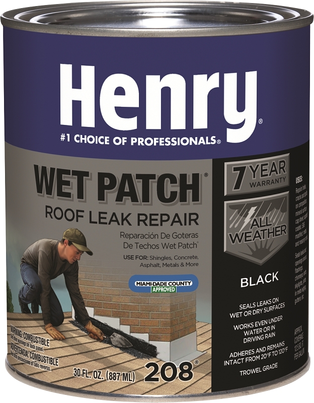 Henry 208® Wet Patch® roof leak repair stops leaks instantly on wet or dry surfaces – even in driving rain.