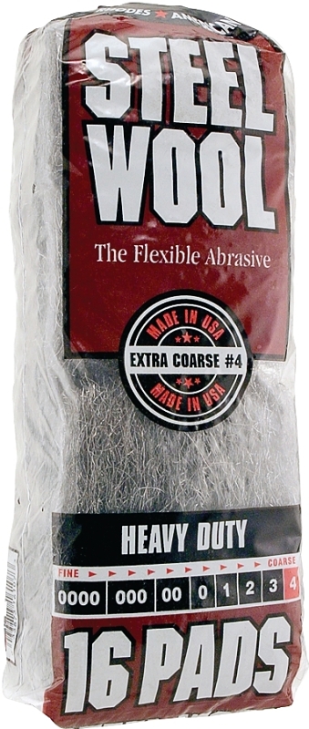 Homax 106607-06 Steel Wool, #4 Grit, Extra Coarse, Gray