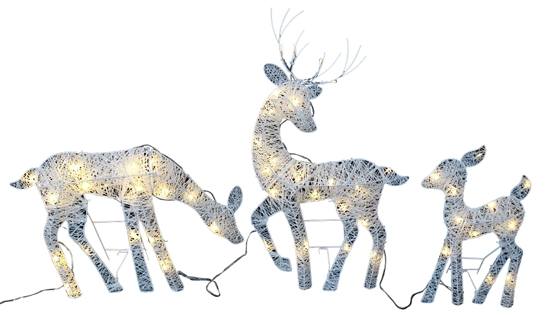Hometown Holidays 56701 Pre-Lit 2D Deer Family, Mesh, White, Mini Bulb, Internal Light/Music: Internal Light
