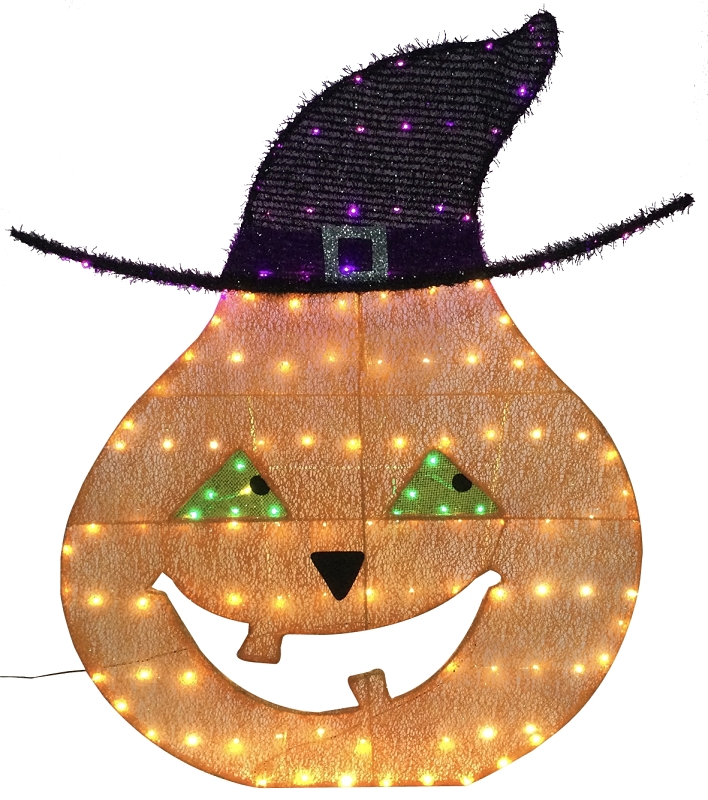 Hometown Holidays 72719 Pre-Lit 2D Pumpkin Halloween Decoration, 40 in H, Black/Orange, Outdoor