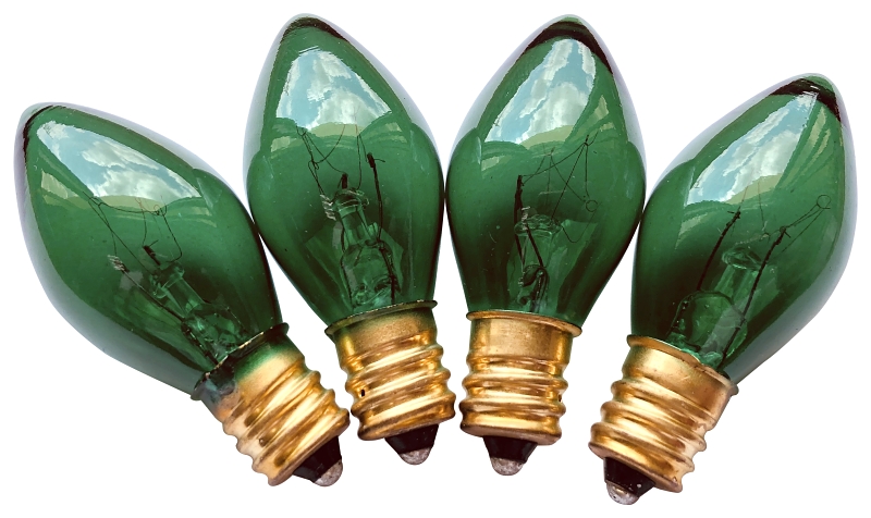 Hometown Holidays 19115 Light Bulb, 5 W, Candelabra Lamp Base, Incandescent Lamp, Transparent Green Light