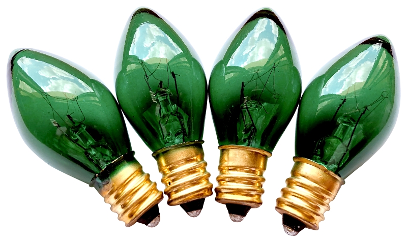 Hometown Holidays 19155 Replacement Bulb, 5 W, Candelabra Lamp Base, Incandescent Lamp, Transparent Green Light