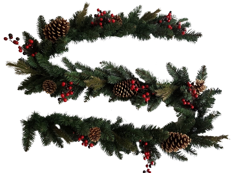 Hometown Holidays 38515 Pine Cone and Red Berry Garland, PVC, Hangtag Mounting