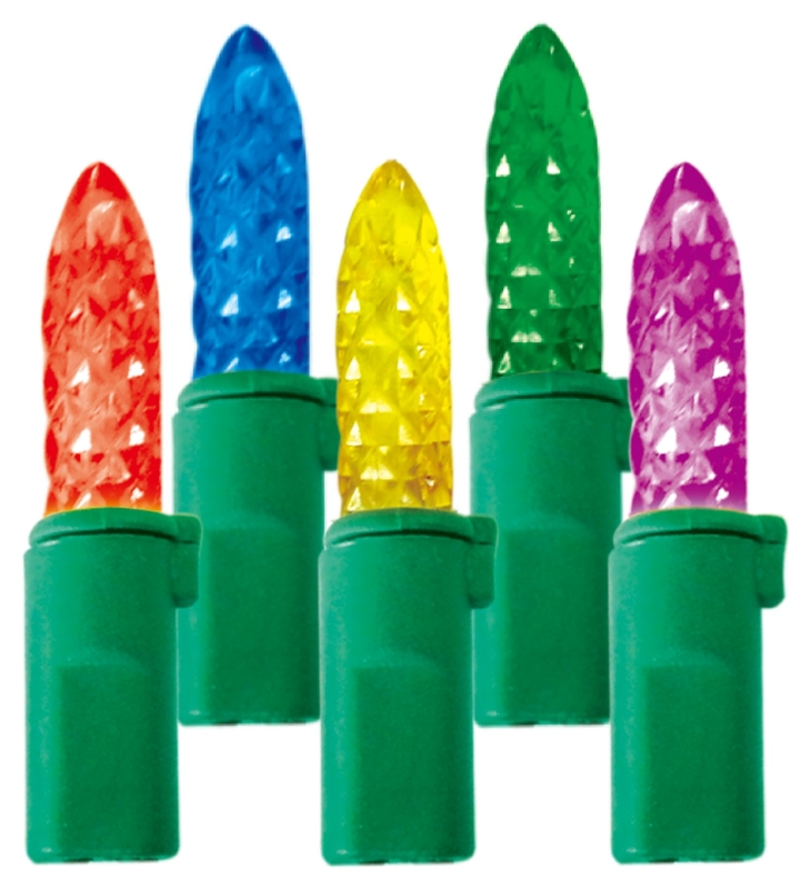 These energy efficient and long lasting C6 LED lights are available in a set of 70 (The length is 17.5 ft L). These C6 LED lights have 2. in spacing between sockets on a green wire with end to end connectors so you can connect multiple sets.