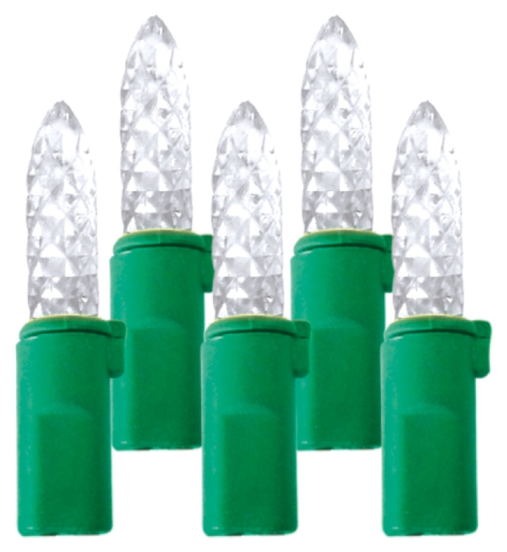 These energy efficient and long lasting C6 LED lights are available in a set of 70 (The length is 17.5 ft L). These C6 LED lights have 2. in spacing between sockets on a green wire with end to end connectors so you can connect multiple sets.