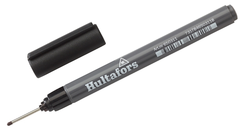Ink pencil for marking in hard-to-reach places and in narrow holes. Hultafors Ink deep hole marker is adapted for marking in hard to reach places and in narrow holes. For use on most materials and surfaces.