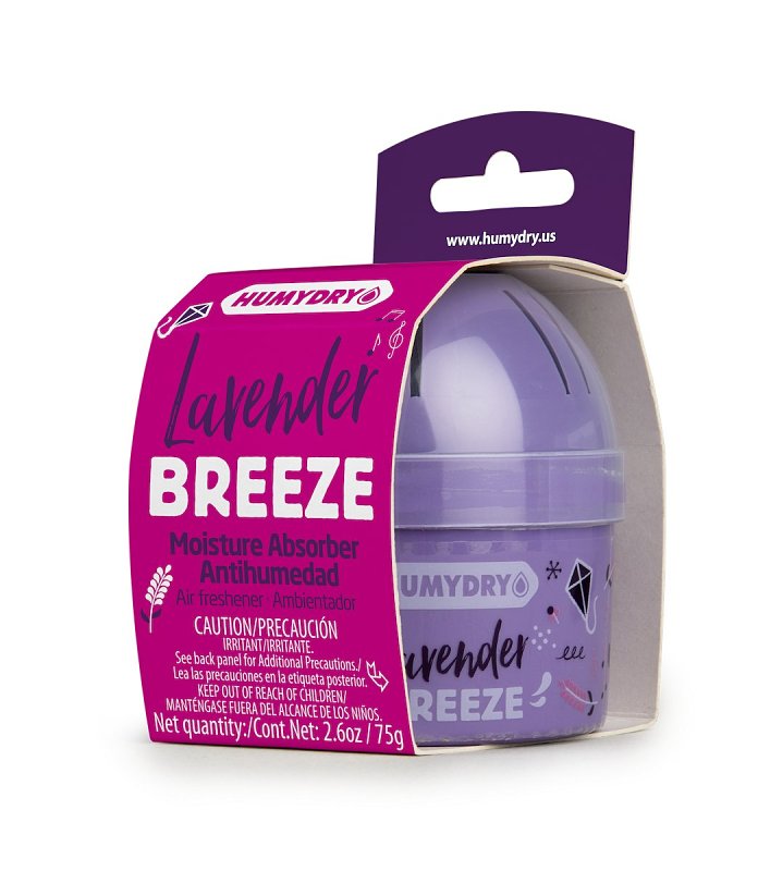Humydry® mini lavender moisture absorber and air freshener is 2 functions in one. It absorbs moisture and freshens the air at the same time. Our moisture absorber works as a non-electric dehumidifiers to help lower excess humidity which protects against condensation and musty odors and creates a healthy indoor environment (40 to 60%). The air freshener has a refreshing floral fragrance.