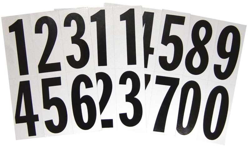 Hy-Ko MM-23N Packaged Number Set, 3 in H Character, Black Character, White Background, Vinyl