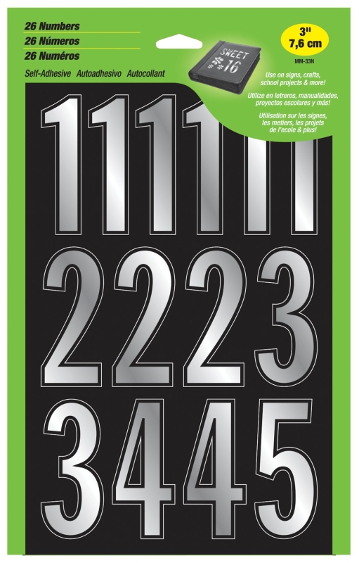 Hy-Ko Prism Number Set, Character Height: 3 in, Character Color: Silver, Vinyl, Dimensions: 7.75 in W x 11.7 in H