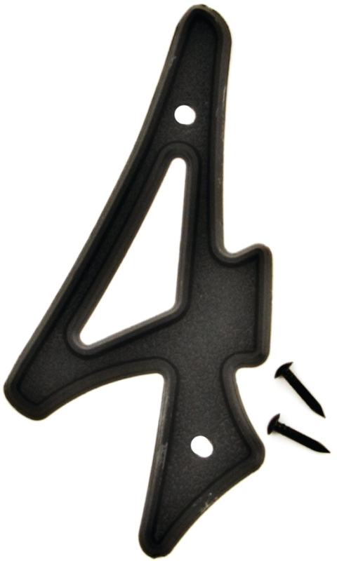 Raised script numbers. Durable, weatherproof plastic. Mounting nails included.
