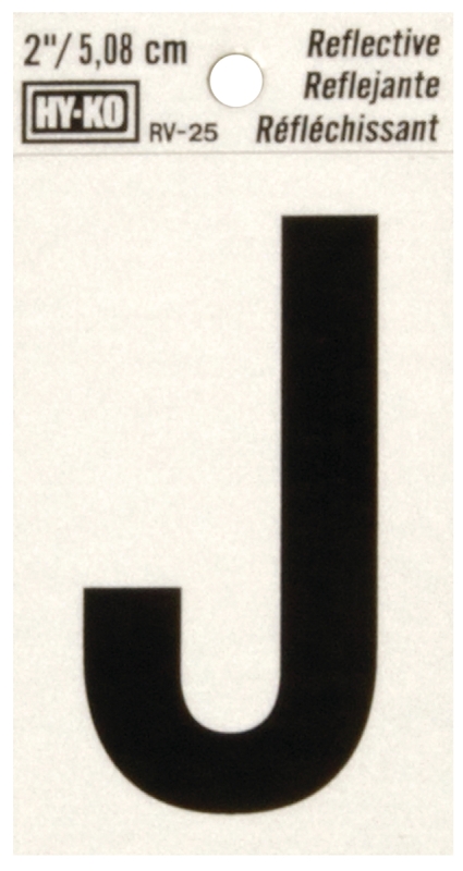 Hy-Ko RV-25/J Reflective Letter, Character: J, 2 in H Character, Black Character, Silver Background, Vinyl