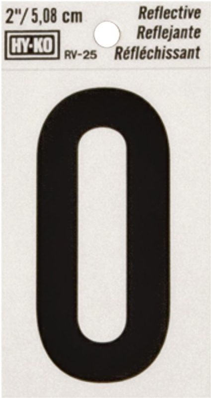 Hy-Ko RV-25/0 Reflective Sign, Character: 0, 2 in H Character, Black Character, Silver Background, Vinyl