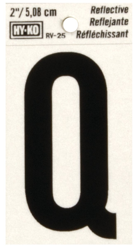 Hy-Ko RV-25/Q Reflective Letter, Character: Q, 2 in H Character, Black Character, Silver Background, Vinyl