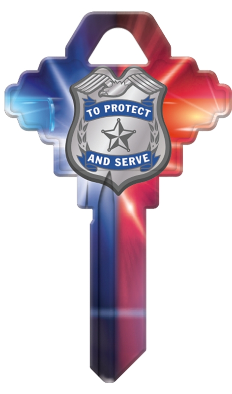 Hy-Ko Key Blank, Design/Theme: Police Badge, Brass, Suitable for: Schlage SC1 Keyways