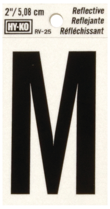 Hy-Ko RV-25/M Reflective Letter, Character: M, 2 in H Character, Black Character, Silver Background, Vinyl