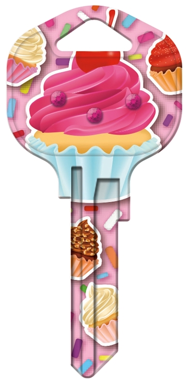 Hy-Ko Key Blank, Design/Theme: Cupcake Bling, Brass, Nickel, Suitable for: Kwikset KW1 Keyways