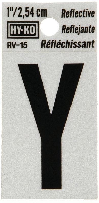 Hy-Ko RV-15/Y Reflective Letter, Character: Y, 1 in H Character, Black Character, Silver Background, Vinyl