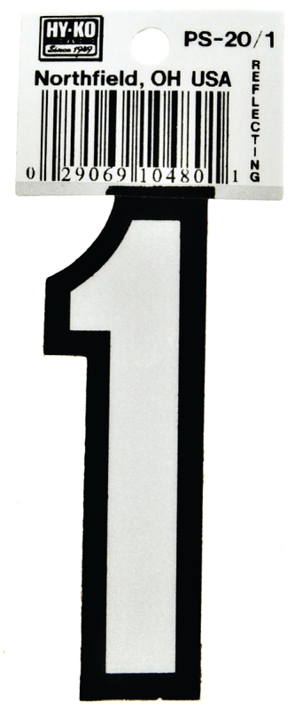 Hy-Ko PS-20/1 Reflective Sign, Character: 1, 3-1/4 in H Character, Black/White Character, Vinyl