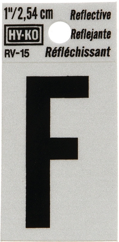 Hy-Ko RV-15/F Reflective Letter, Character: F, 1 in H Character, Black Character, Silver Background, Vinyl