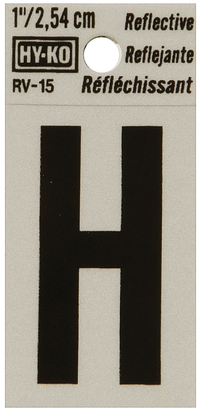 Hy-Ko RV-15/H Reflective Letter, Character: H, 1 in H Character, Black Character, Silver Background, Vinyl
