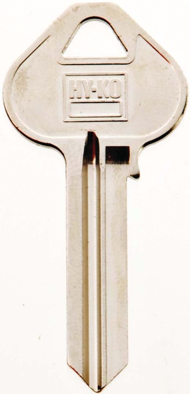 Hy-Ko Key Blank, Brass, Nickel, Dimensions: 2.226 in L x 1.049 in W x 0.086 in D, Suitable for: Russwin and Corbin Cabinet, House Locks and Padlocks