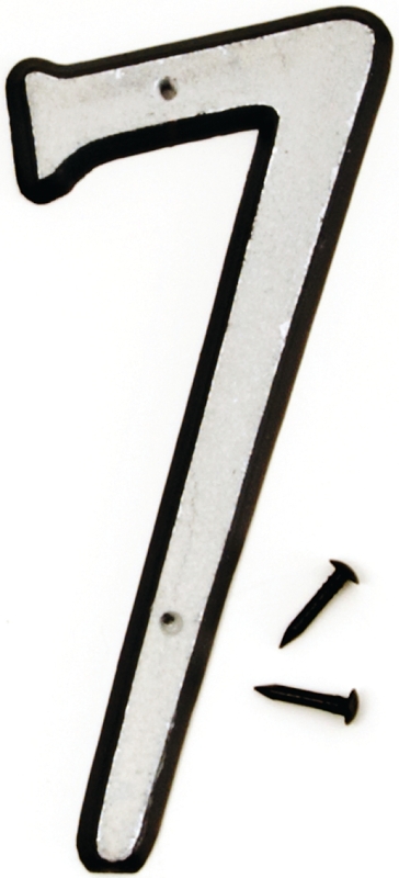 Black plastic with white reflective numeral face. Mounting nails included.