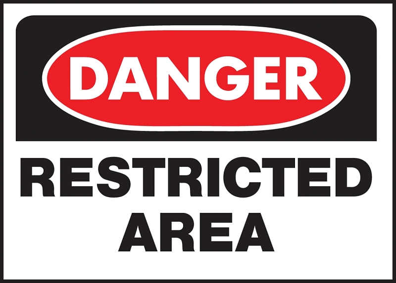 Red, black and white coloring. Durable and weather-resistant. Use in industrial workplace settings. Sign states “DANGER RESTRICTED AREA”.