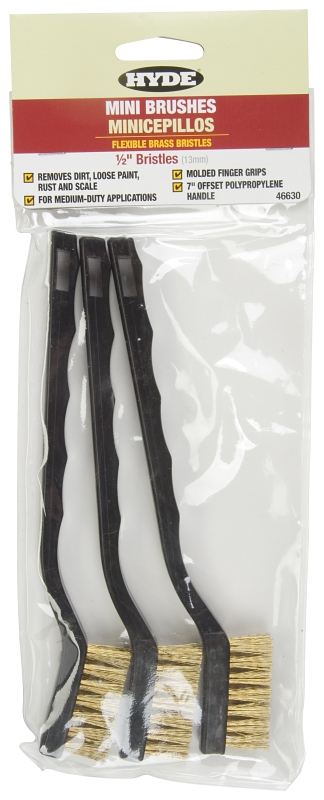 Hyde 46630 Mini Brush, 1/2 in L Trim, Brass Bristle, 10 in OAL