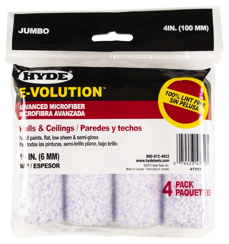 Hyde 47313 Jumbo Mini Roller Cover, 1/4 in Thick Nap, 4 in L, 4/PK