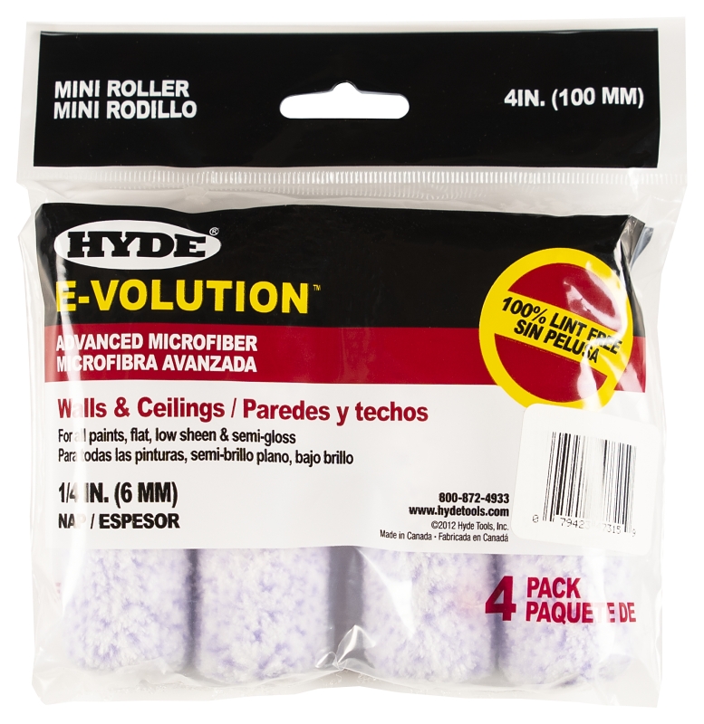 Hyde 47315 Mini Roller Cover, 1/4 in Thick Nap, 4 in L, 4/PK