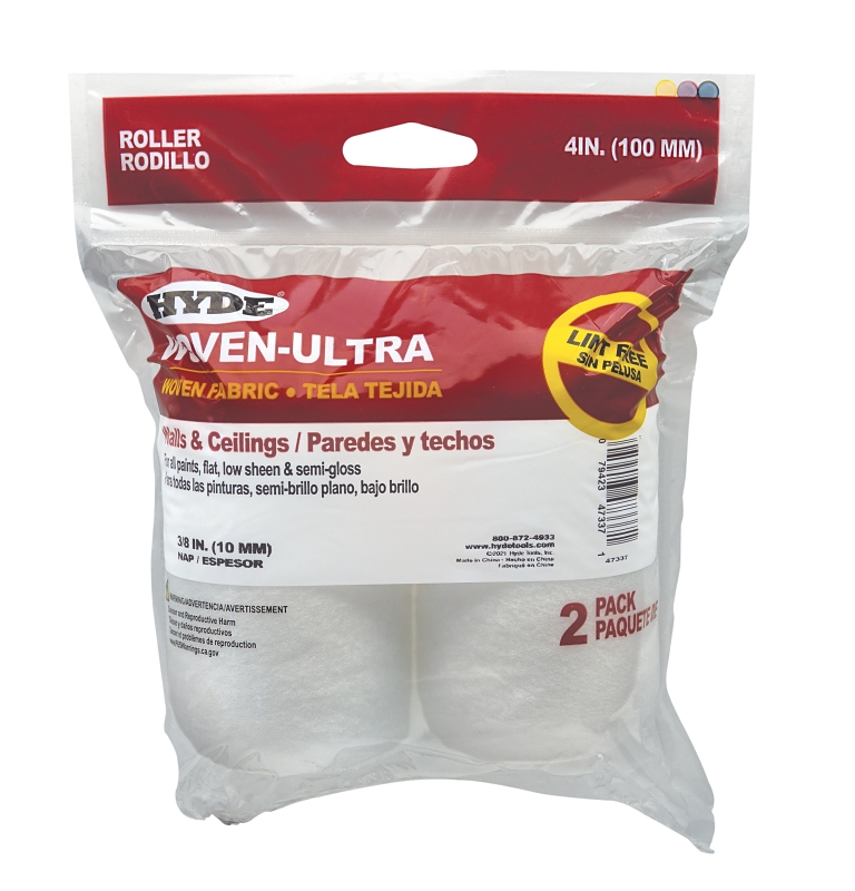 4 in woven-ultra roller cover, 3/8 in NAP, with 1-1/2 in core, 2 per pack. Excellent for all paint types and epoxies, shed-resistant, resists matting and stay resilient through full days work.